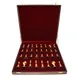 Набор упакован в эксклюзивную подарочную коробку, что делает его идеальным подарком для тех, кто ценит настоящее искусство и высокое качество. В процессе изготовления использовано 20 мкм никеля и 5 мкм золота 999,9, а камень для доски – малахит, добытый в России и Конго.