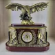 Бронзовые кварцевые часы "Орел двуглавый" из змеевика с визитницей и карандашницами
